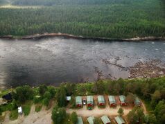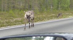 Kurz nachdem wir die Finnische Grenze passiert hatten, haben wir auch auf der Strasse die ersten Rentiere gesehen. Nun sind wir in einer Hütte direkt am Fluss auf einem Camping Platz. Noch immer ist es erstaunlich warm, bis 25°. Unsere Hütte haben wir mit Duschtüchern und Bettüberwurf verdunkelt.